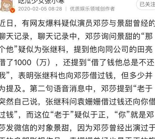 张小寒最新爆料景甜,张小寒最新爆料揭露惊人内幕